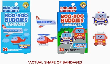 2-Pack Helicopter & Plane + Police Car & Fire Truck Bandages Bundle – 48 Fun-Shaped, Waterproof, Latex-Free Bandages for Kids' First Aid Kits