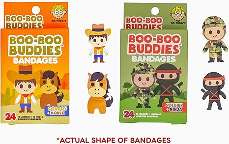 2-Pack Boo Boo Buddies™ Cowboy + Horse and Soldier + Ninja Shape Bandages – 48 Ct | Fun Kids' First Aid, Latex-Free, Waterproof, Gentle on Sensitive Skin, Perfect for Party Favors, Themed Gifts & First