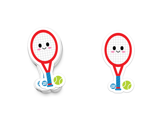 Boo Boo Buddies™ Tennis Racket & Ball Sticker – Cute Kawaii Vinyl, Waterproof Glossy 3″ Die‑Cut