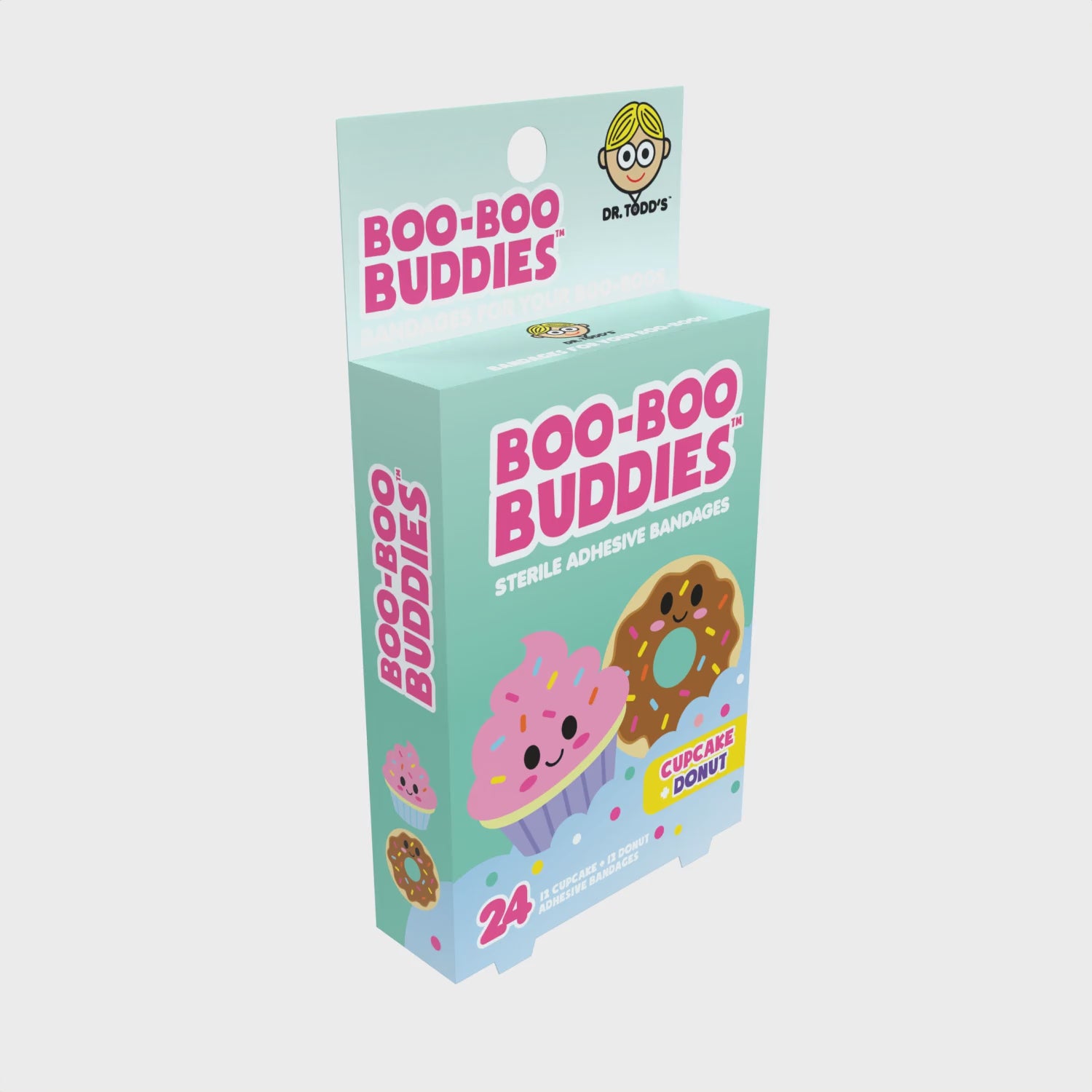 Boo Boo Buddies™ Cupcake & Donut Bandages are the perfect way to comfort little injuries with fun food-shaped flair. Each box includes 12 donut and 12 cupcake-shaped bandages—colorful, waterproof, and latex-free. They're gentle on sensitive skin and tough enough to stay on through playdates and dessert time.