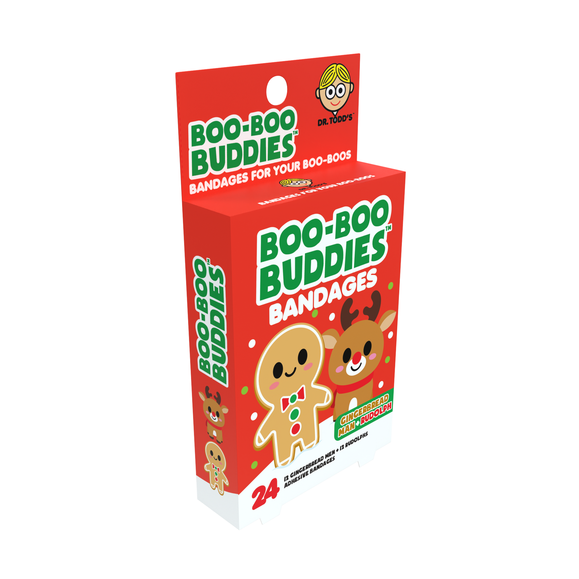 Gingerbread Man & Rudolph Bandages for Kids – Waterproof, Latex-Free, 24 Count | Dr. Todd’s Boo-Boo Buddies®