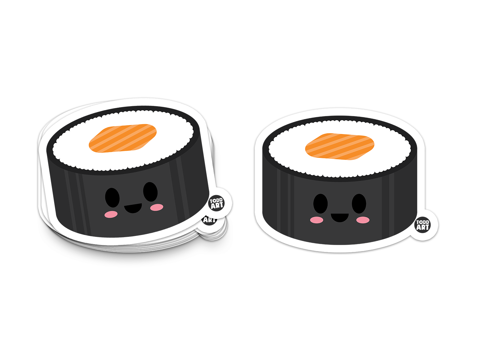 Boo Boo Buddies™ Sushi Roll Sticker – Cute Kawaii Vinyl Sticker, Waterproof Glossy 3″ Die‑Cut