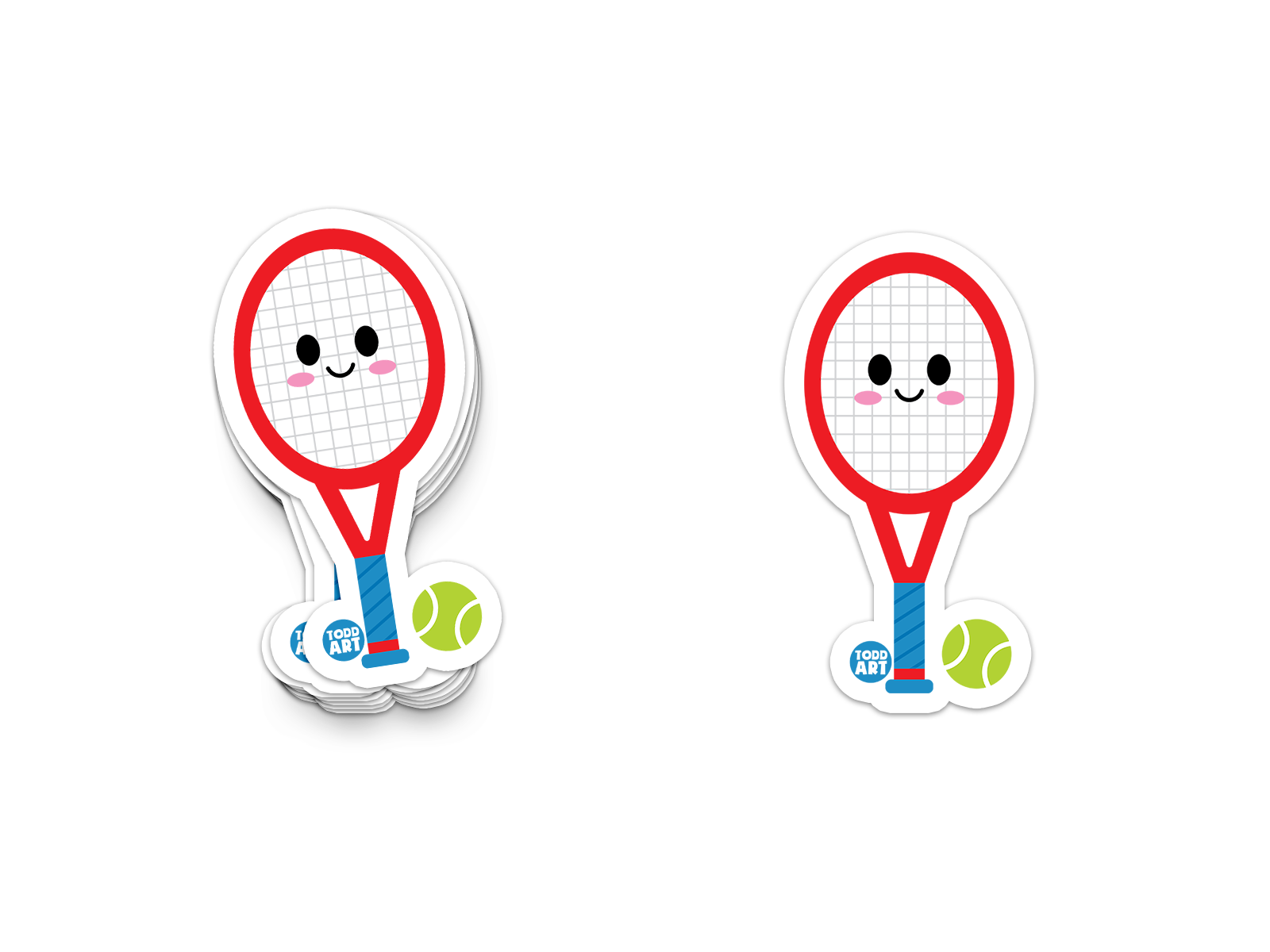 Boo Boo Buddies™ Tennis Racket & Ball Sticker – Cute Kawaii Vinyl, Waterproof Glossy 3″ Die‑Cut
