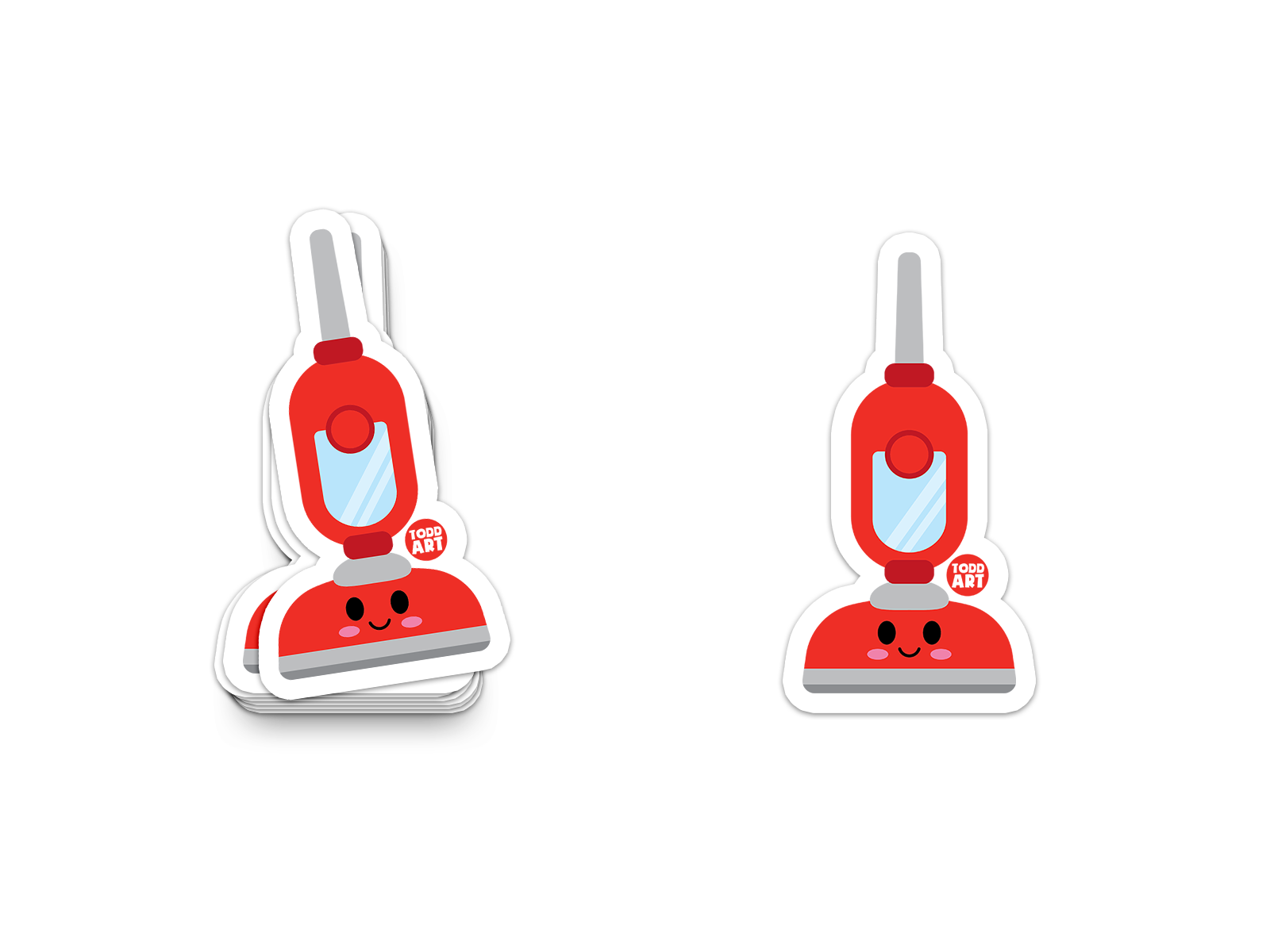 Make cleaning fun with the Boo Boo Buddies™ Vacuum Sticker. This 3″ die-cut vinyl sticker features an adorable kawaii-style vacuum cleaner, printed on waterproof, UV-resistant, glossy vinyl. Durable and easy to apply, it adheres cleanly to smooth surfaces and removes without residue. Ideal for planners, planners, scrapbooks, craft projects, or whimsical décor—perfect for kids, collectors, and lovers of quirky home-themed designs.