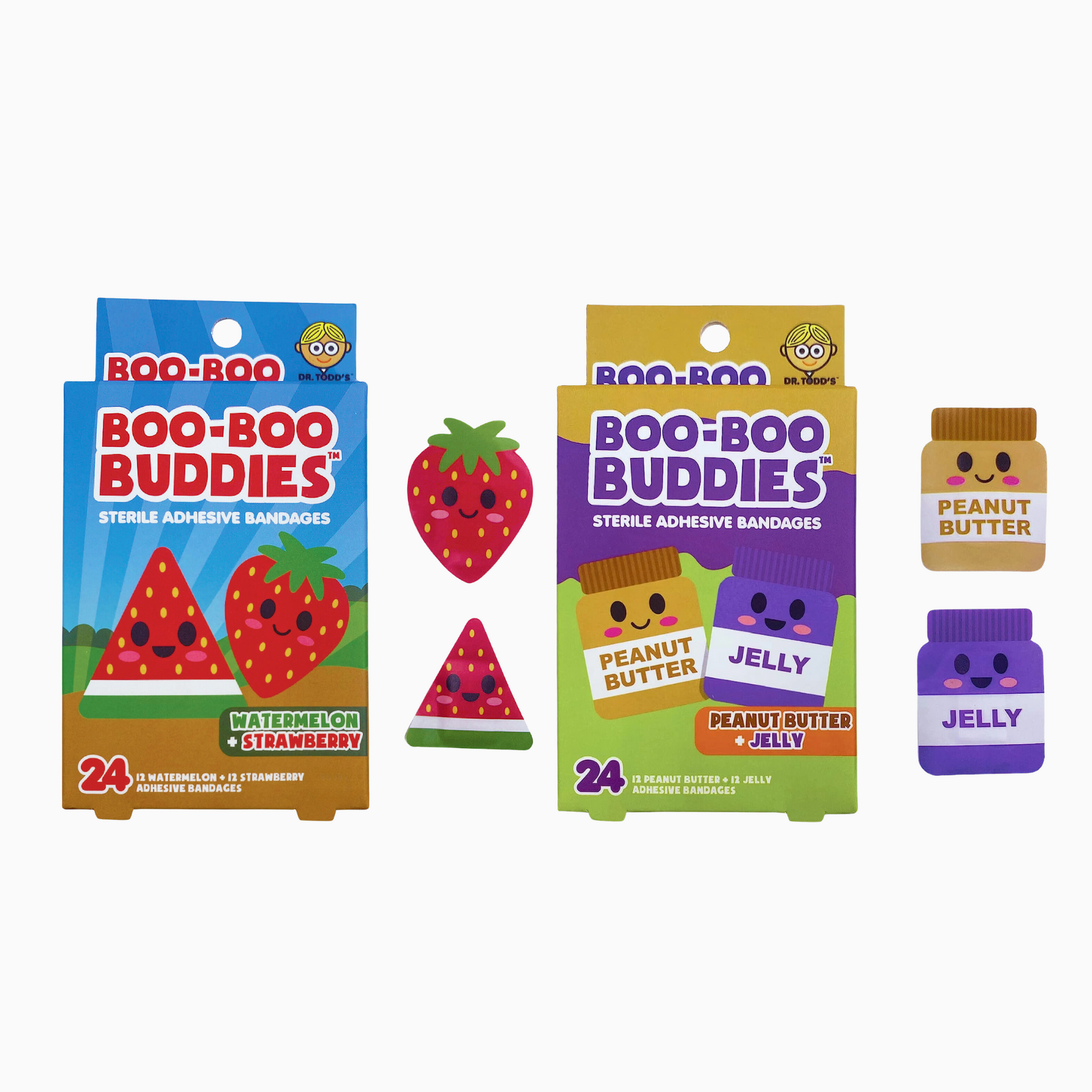 Make first aid a fun and exciting experience for kids with Boo Boo Buddies™ Watermelon + Strawberry and Peanut Butter + Jelly Shape Bandages. These colorful, playful bandages are designed to bring joy to everyday scrapes and cuts while providing durable protection. Made with a waterproof, latex-free adhesive, they’re perfect for sensitive skin and can handle active play and water activities. Each box includes 24 bandages, individually wrapped for hygiene and convenience. Whether for first aid kits, party favors, or unique gifts, Boo Boo Buddies™ bandages make healing happy and stress-free!