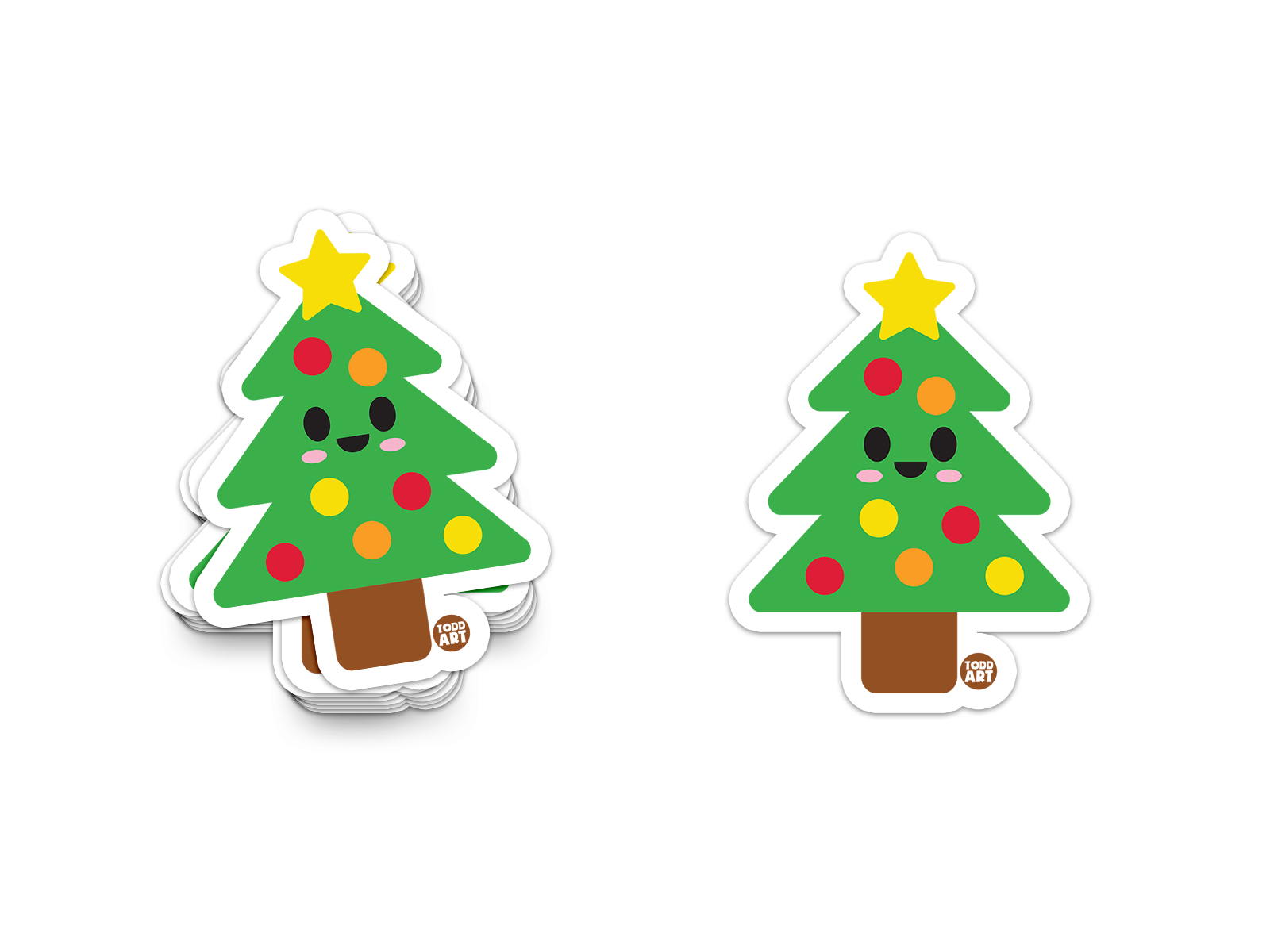 Boo Boo Buddies™ X-mas Tree Sticker – Cute Kawaii Vinyl Sticker, Waterproof Glossy 3″ Die‑Cut